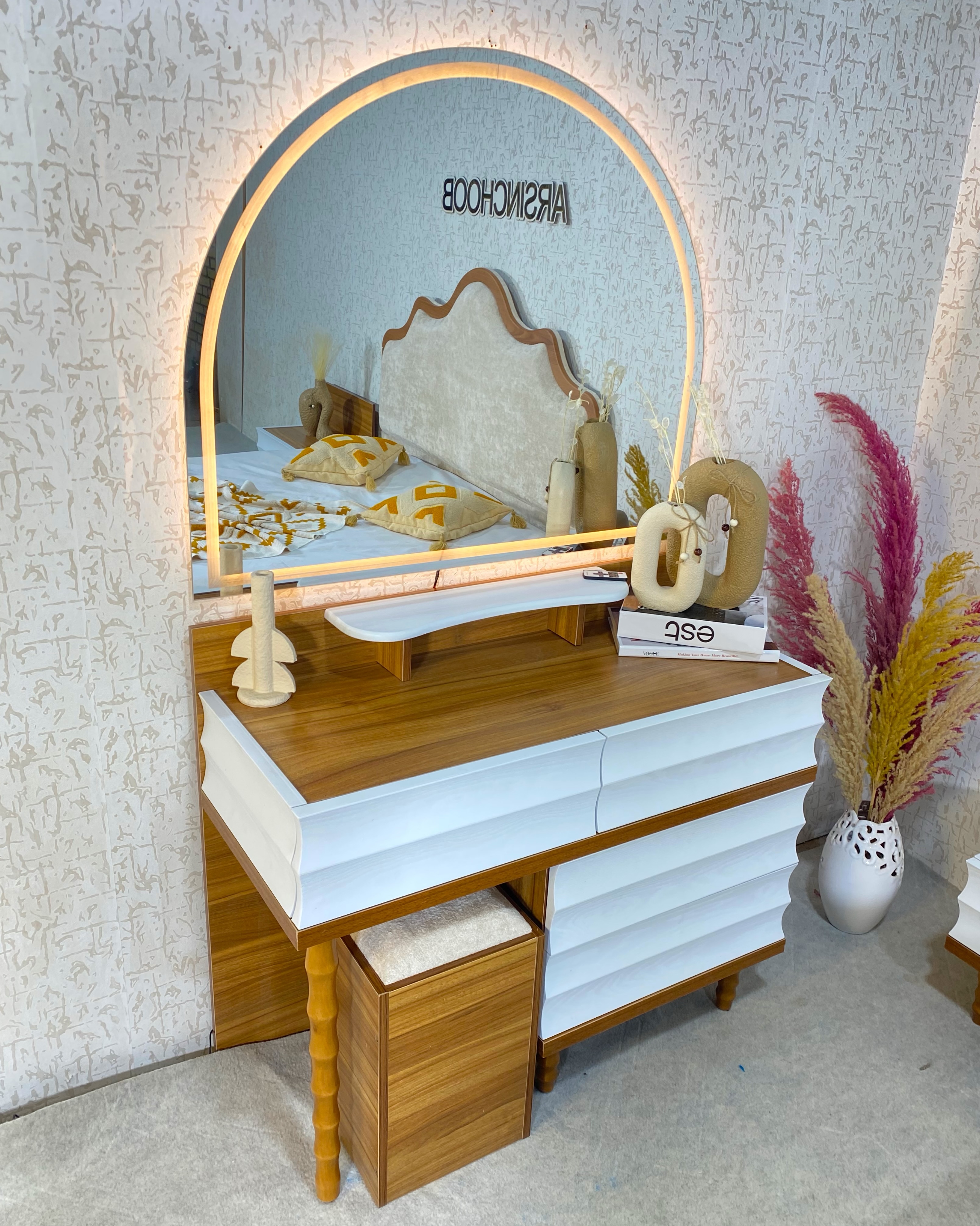 و یک عدد میز آرایش مدرن با اینه ی بزرگ نور پردازی شده که با کنترل از راه دور خاموش روشن میشه