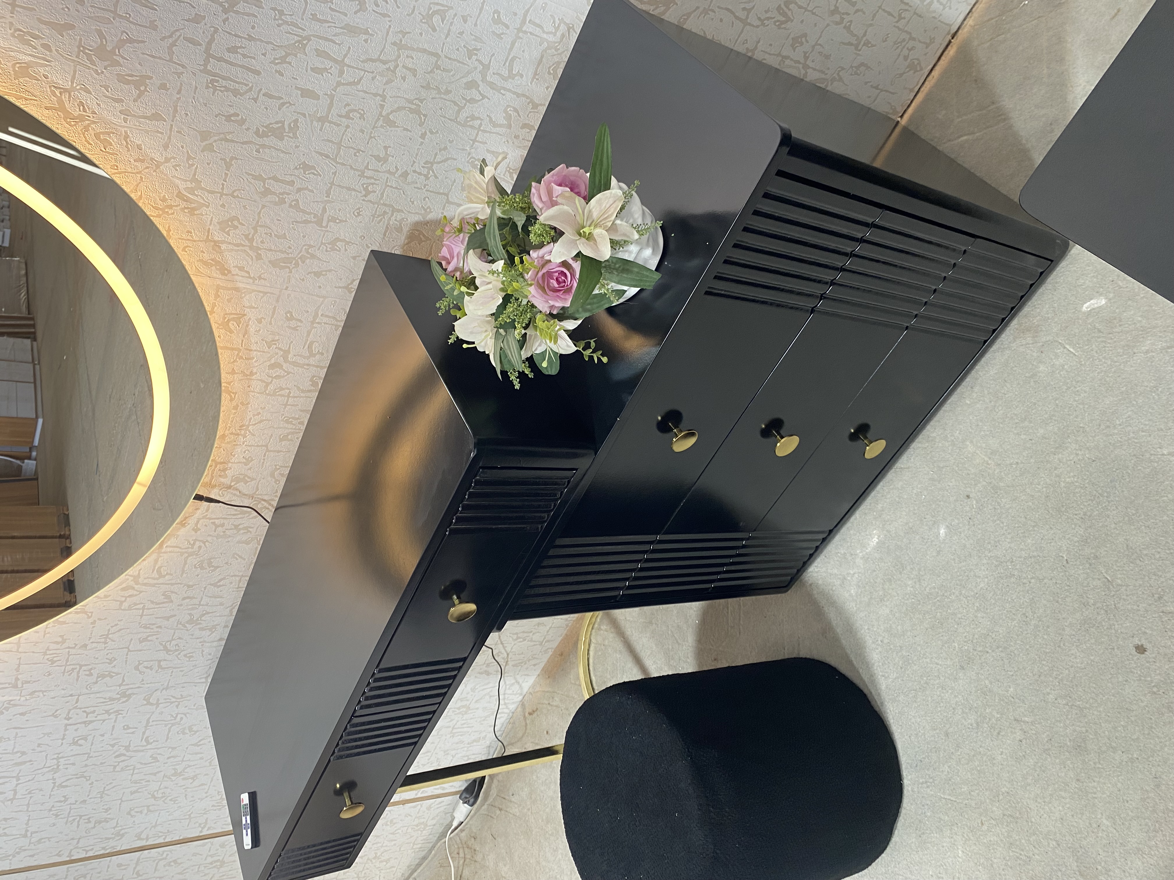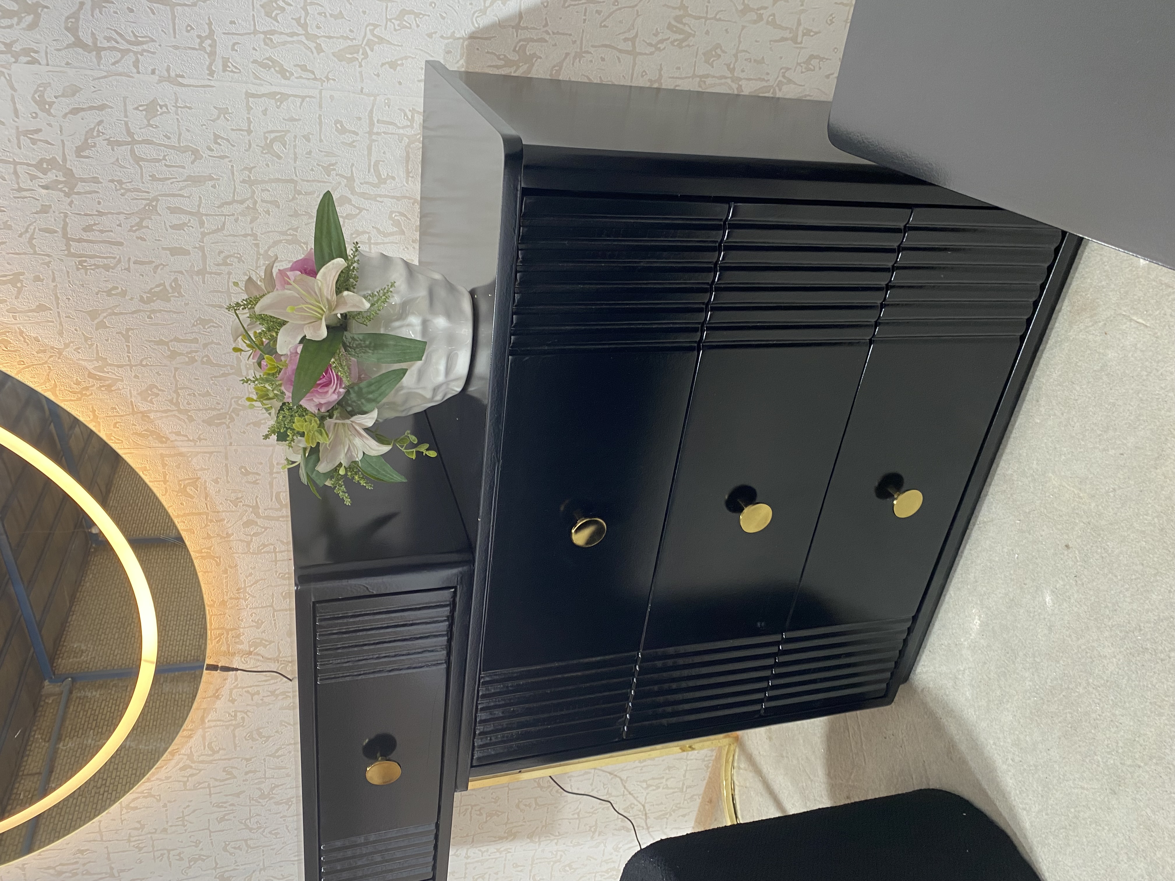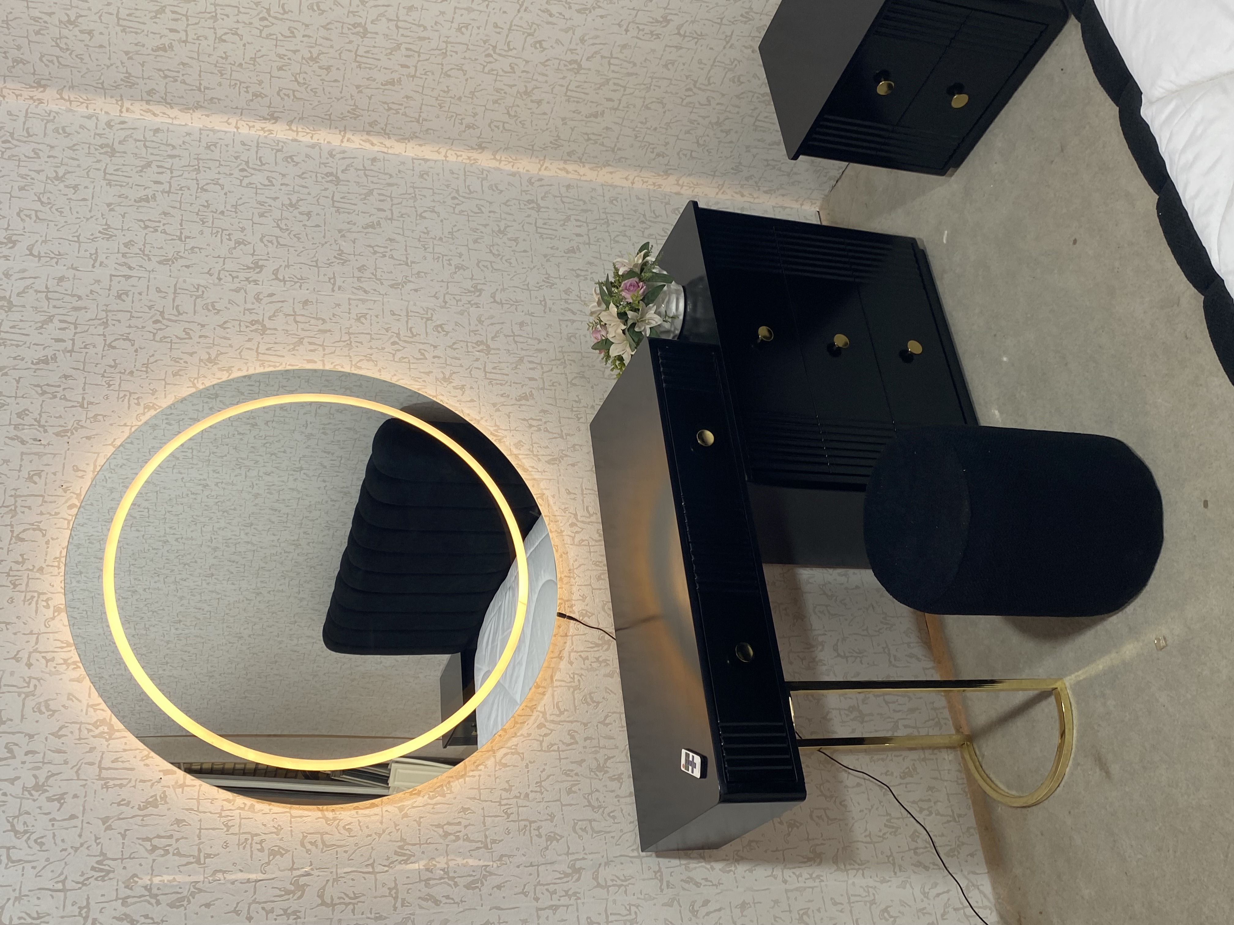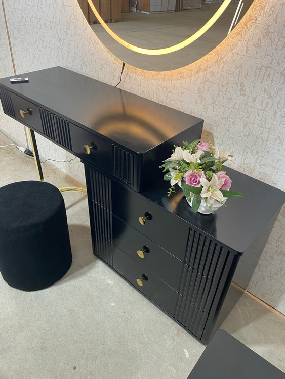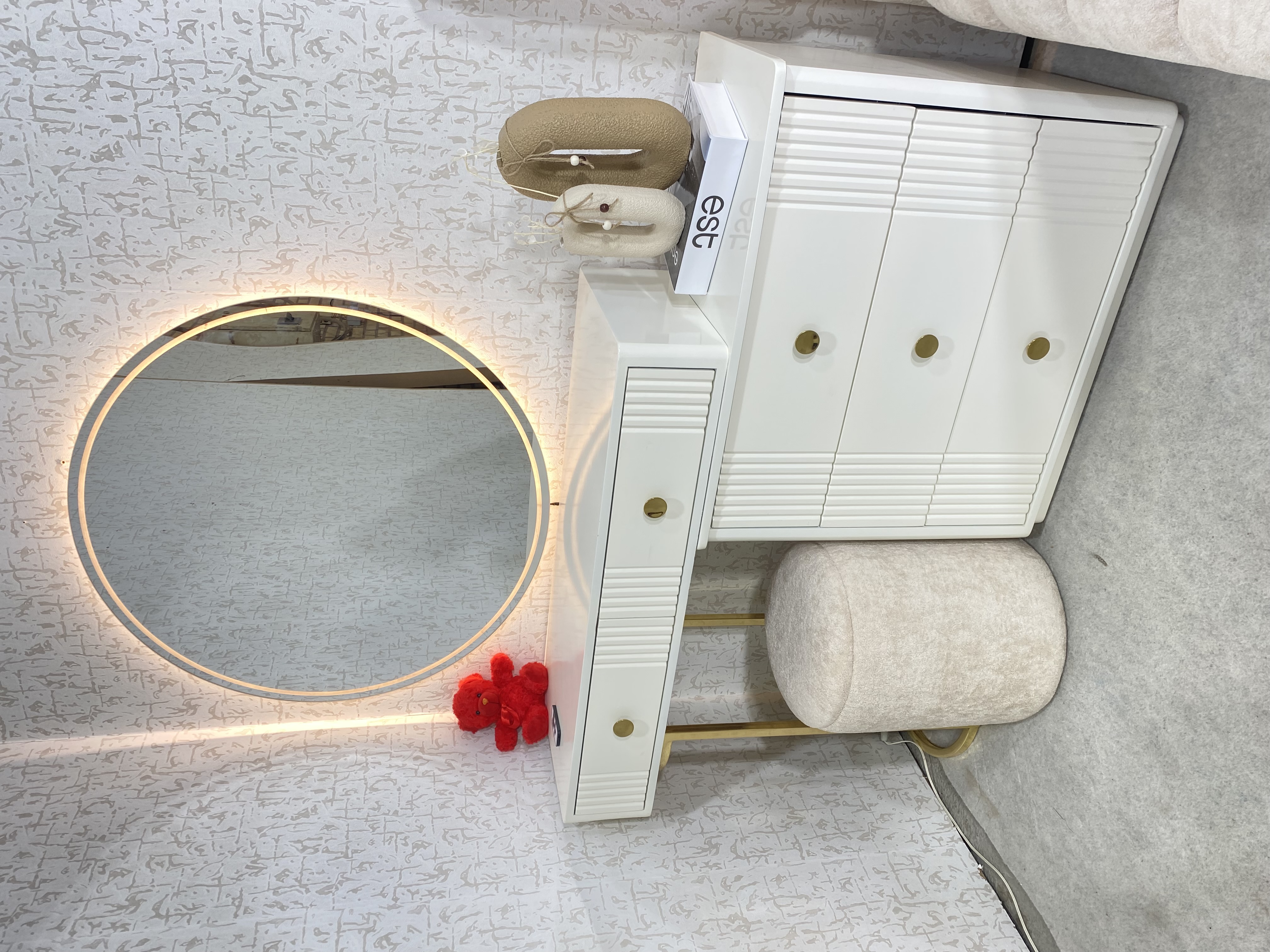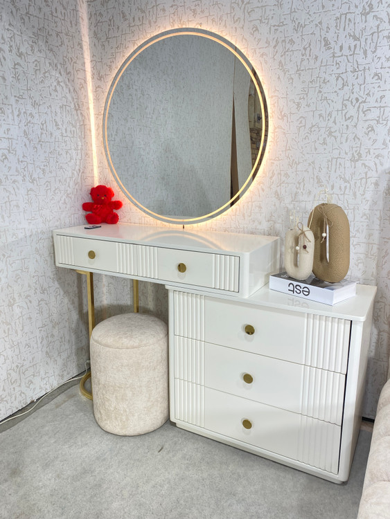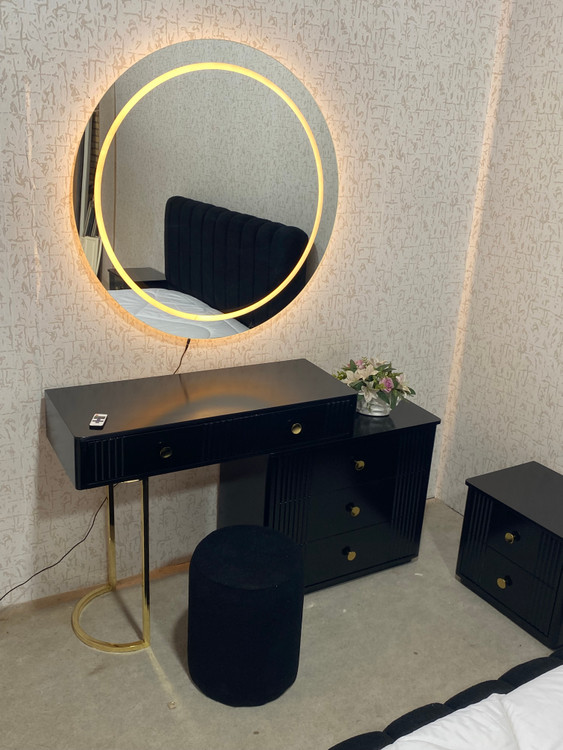 میز آرایش دو تیکه و اینه گرد سایز ۹۰ نور پردازی شده